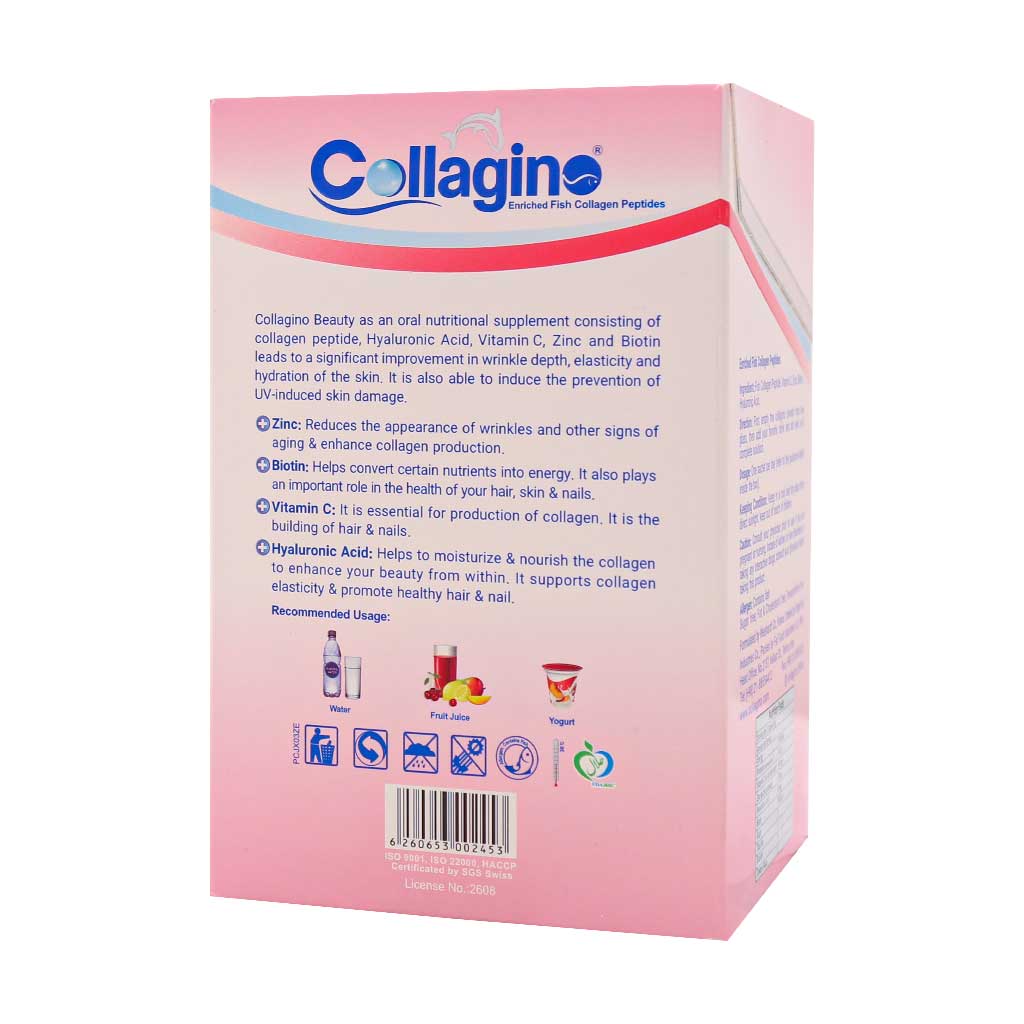 ساشه کلاژن بیوتی کلاژینو صورتی یک محصول منحصر به فرد از شرکت کلاژینو ساخت فرانسه است. کلاژینو بیوتی یک محصول کامل جهت تقویت پوست، مو و ناخن است. این محصول یک مکمل ۵ در ۱ است که تمام ترکیبات مورد نیاز برای تقویت مو، پوست و ناخن در این محصول به شکل کامل وجود دارد. در ترکیبات این محصول کلاژن، ویتامین سی، زینک، بیوتین و هیالورونیک اسید وجود دارد و به همین دلیل است که آن را به عنوان یک مکمل عالی برای پوست، مو و ناخن تبدیل کرده است. کلاژن استفاده شده در این ساشه از ماهی گرفته شده است.